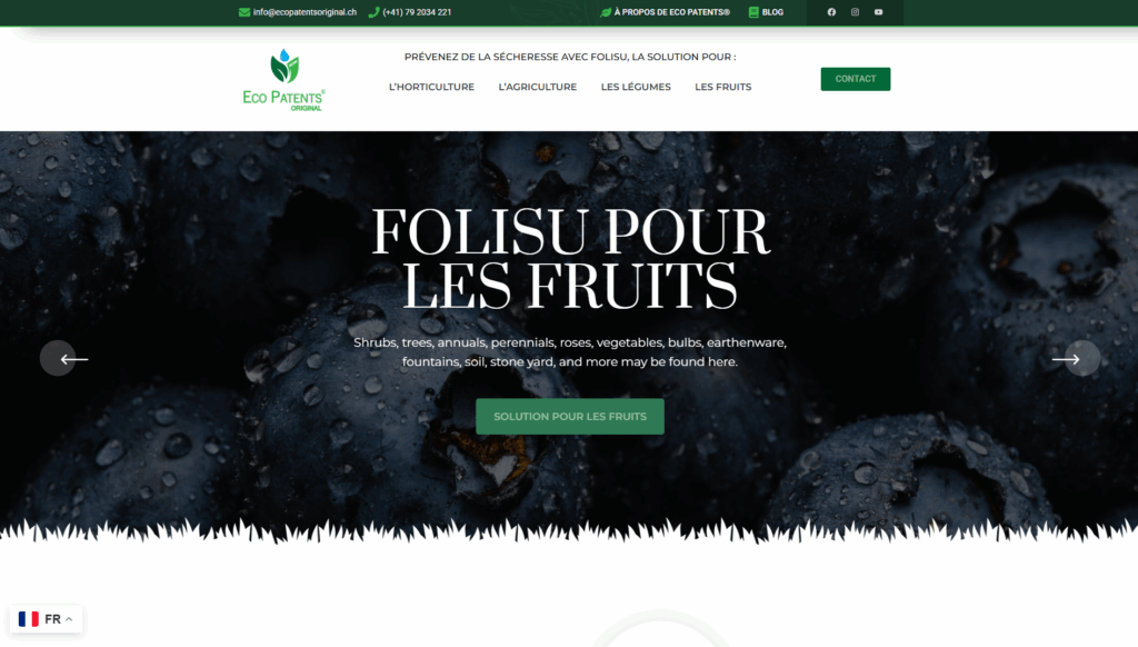 Notre collaboration avec Eco Patents® a donné naissance à un site web à la hauteur de leur engagement. Ensemble, nous avons conçu une plateforme claire et impactante pour mettre en lumière leur technologie et leur vision d’une agriculture plus résiliente.